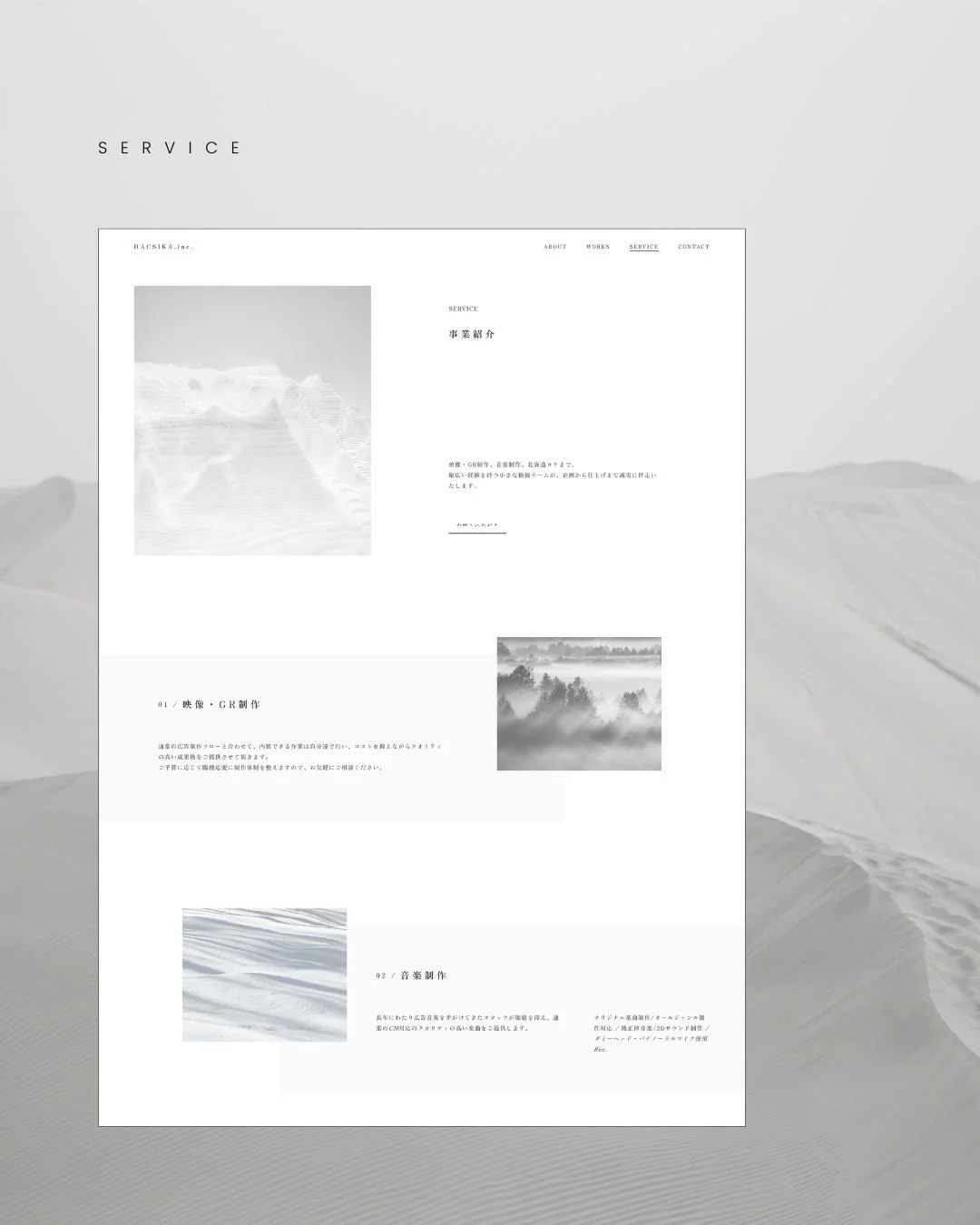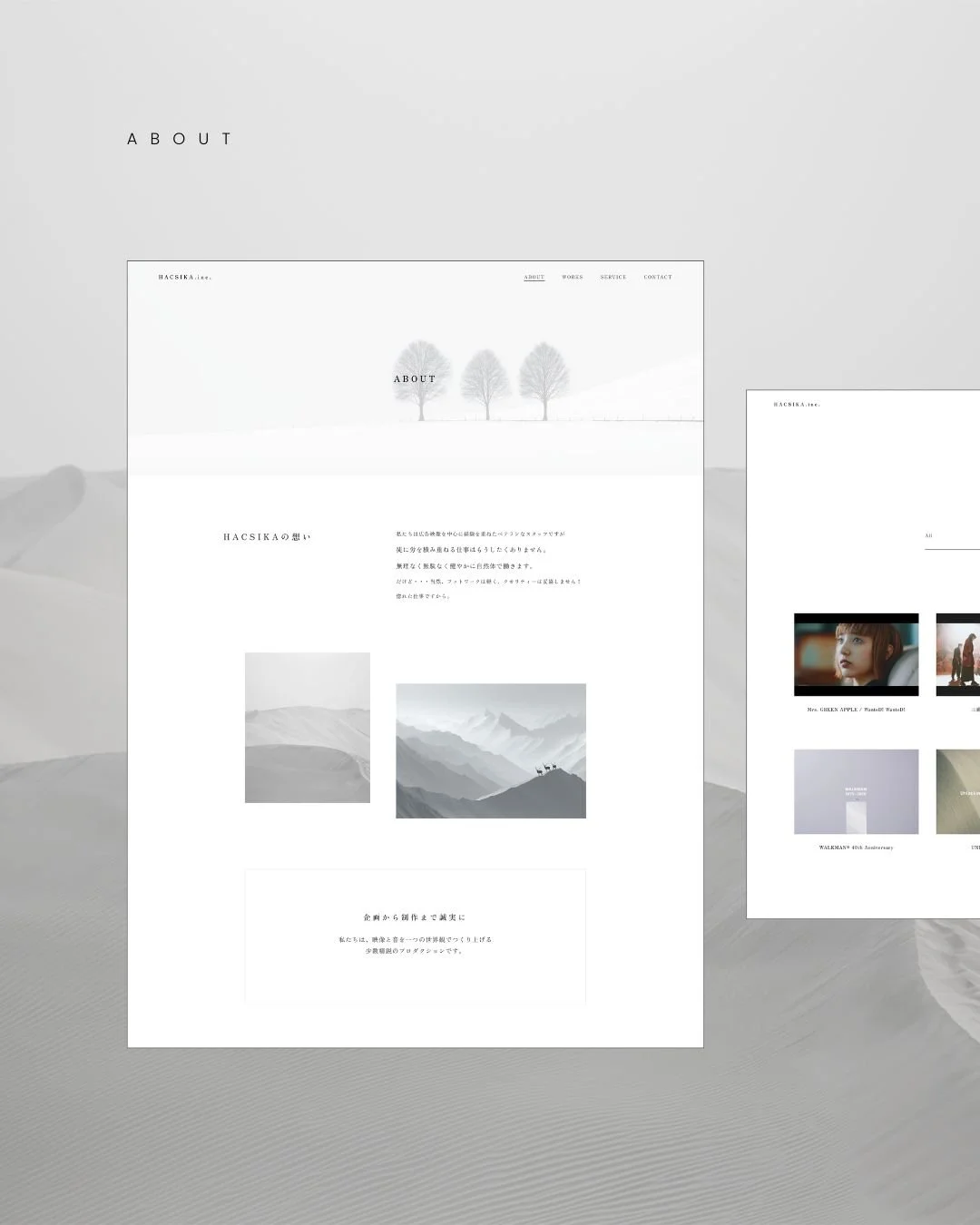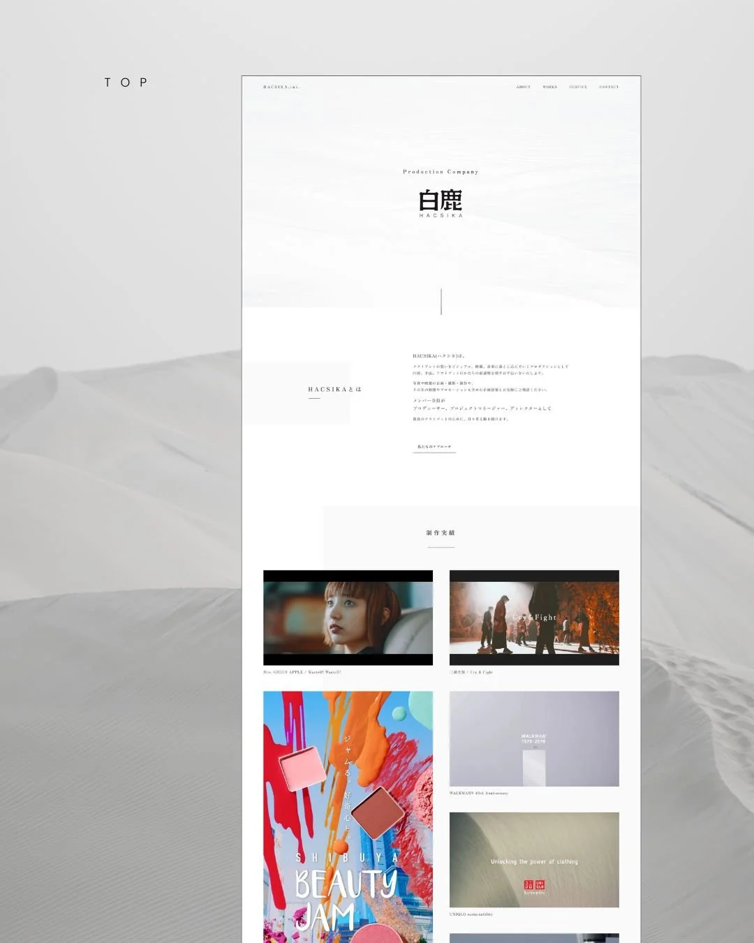 映像と音楽制作を手がける少数精鋭集団、白鹿(HACSIKA. inc.)のブランディングとWebサイト制作を担当させていただきました。